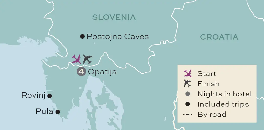 Join us on a festive trip to the famous Opatija Riviera in Northern Croatia on our special Christmas in Croatia tour. Spend time in Opatija, also visit the coastal city of Pula with its Roman Amphitheatre and then visit the Postojna Caves in Slovenia for a very special festive surprise.