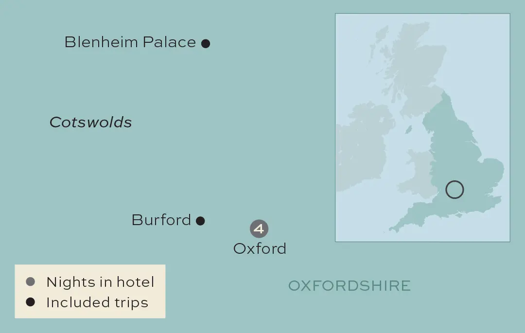 Discover the historic city of Oxford, visit Burford and Blenheim Palace, and enjoy a traditional Christmas Day lunch.