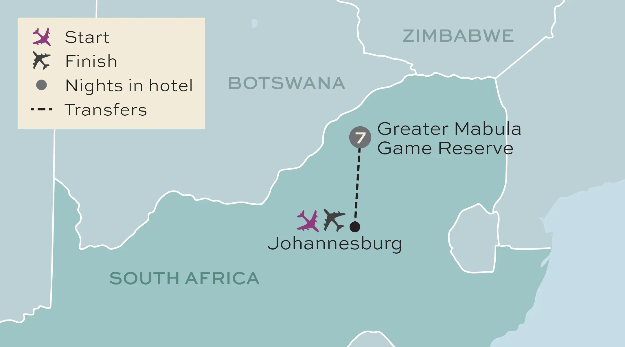 - 7 nights in a 4 star safari lodge, 2 nights in flight